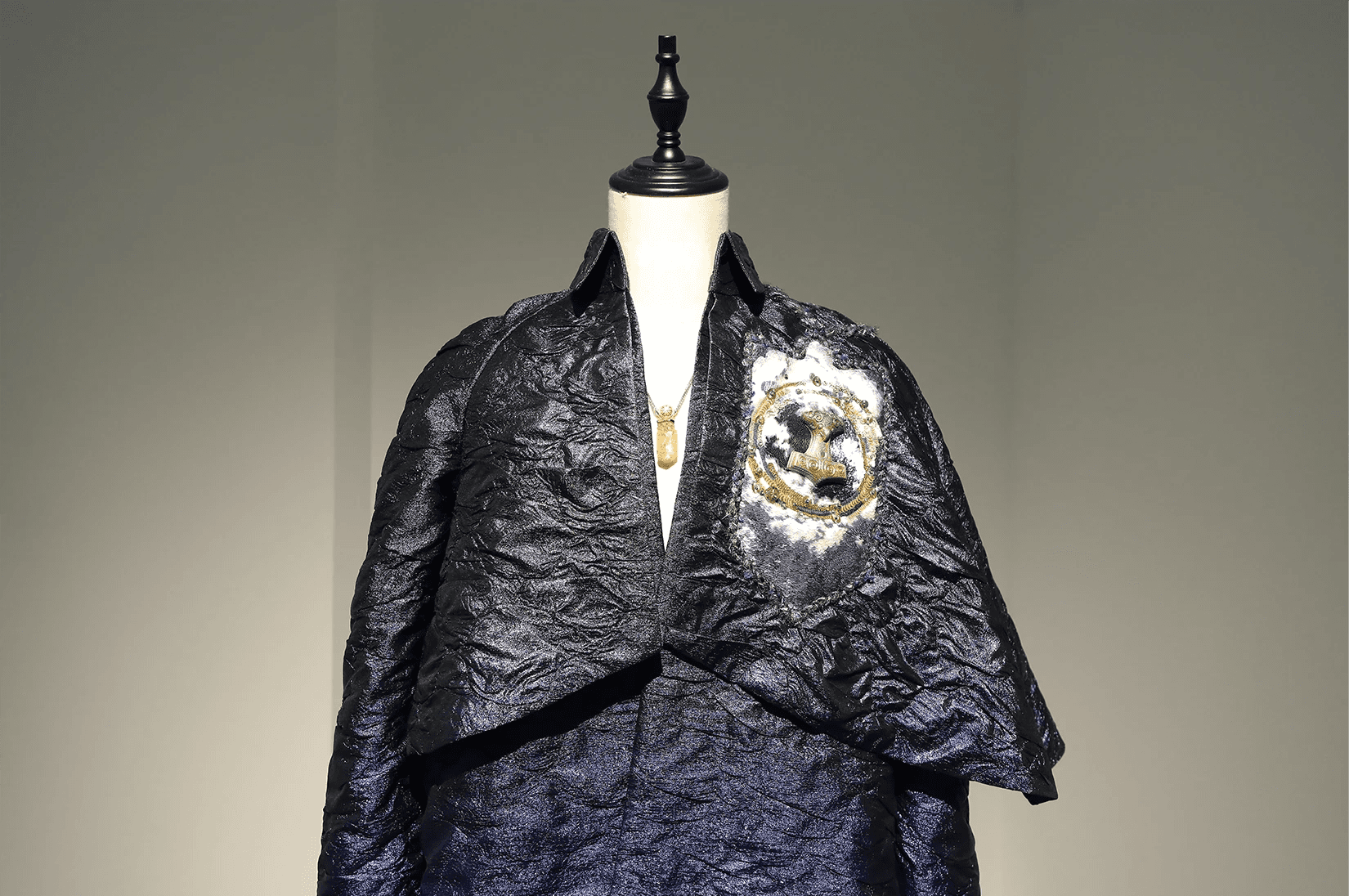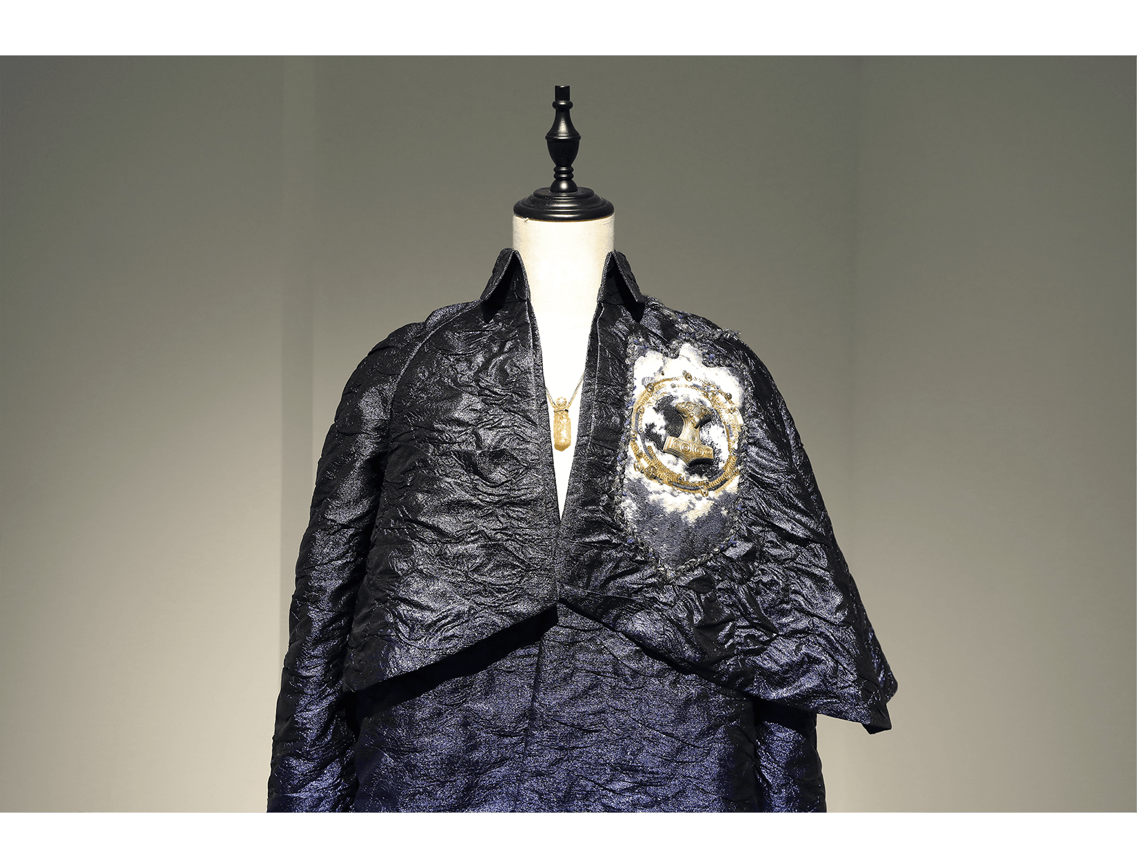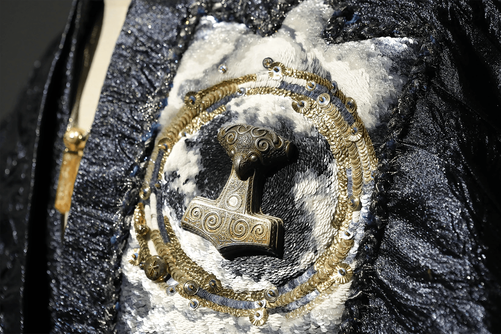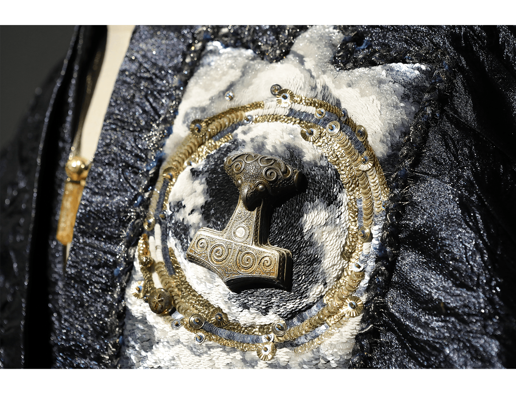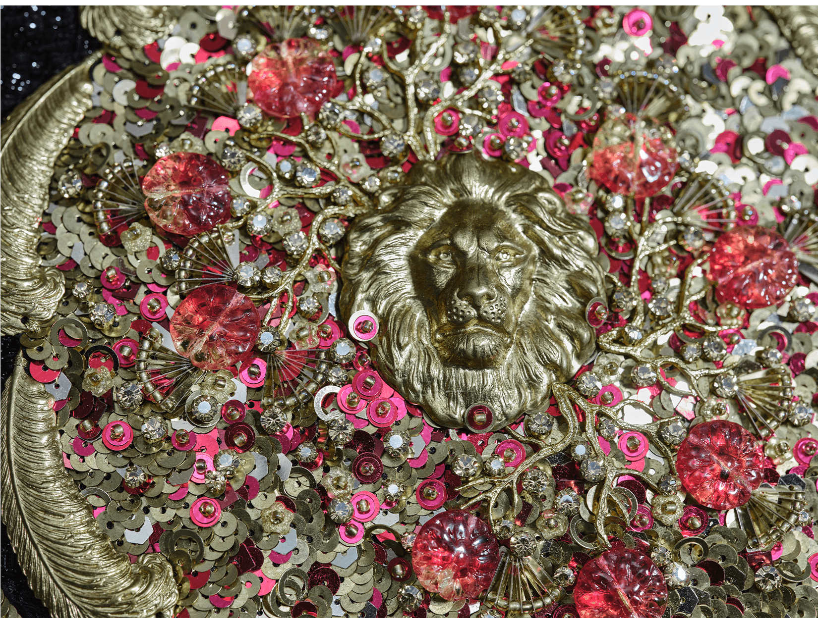 In conventional French couture embroidery, coloured thread is used as a distinctive decorative element. It is often combined with sequins, rhinestones, or feathers, allowing materials to be rapidly chained together to create dense, opulent surfaces. This effect can be striking and theatrical; however, the reliance on single threads, larger needles, and a lack of consideration for the weight and tension of the embellishments often leads to structural issues. Over time, many such embroideries loosen, shed elements, or pull and distort the base fabric.